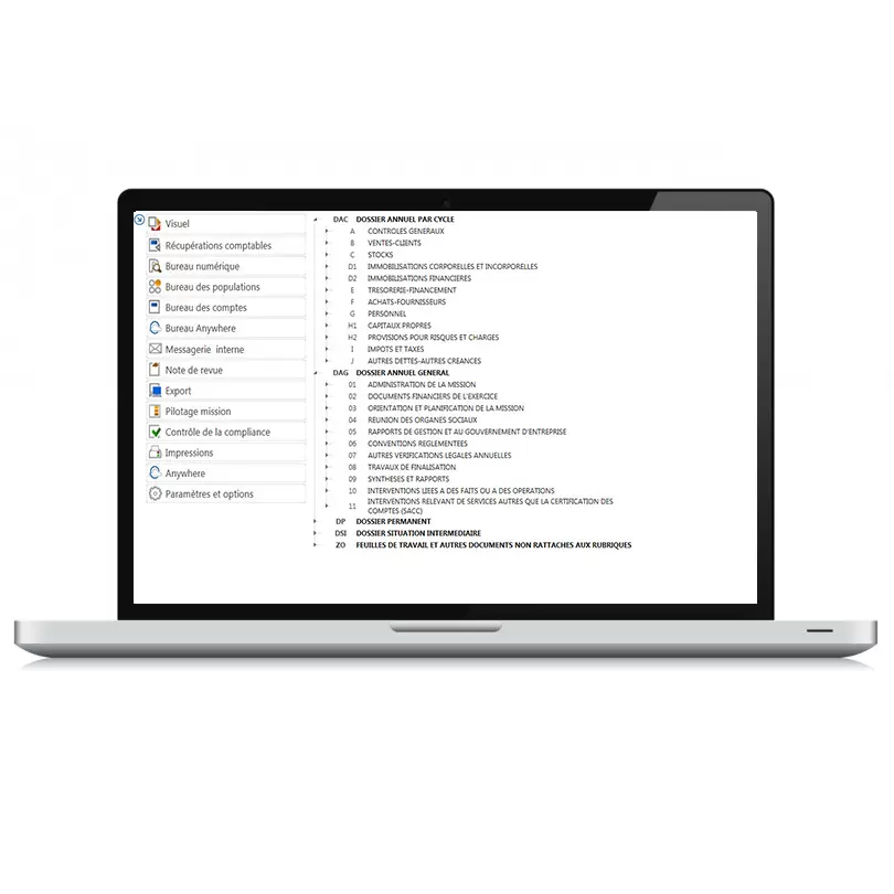 - Suivez facilement vos missions grâce aux plans de classement AUDITSOFT PREMIER : Accès direct au plan de classement général (DAC, DAG, DP) et au plan de classement méthodologique.
